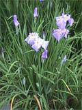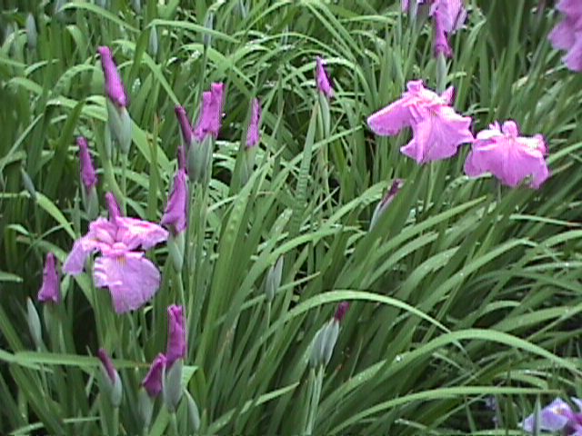 The iris garden extending around me is soaked by the rain falling on without any sound further.